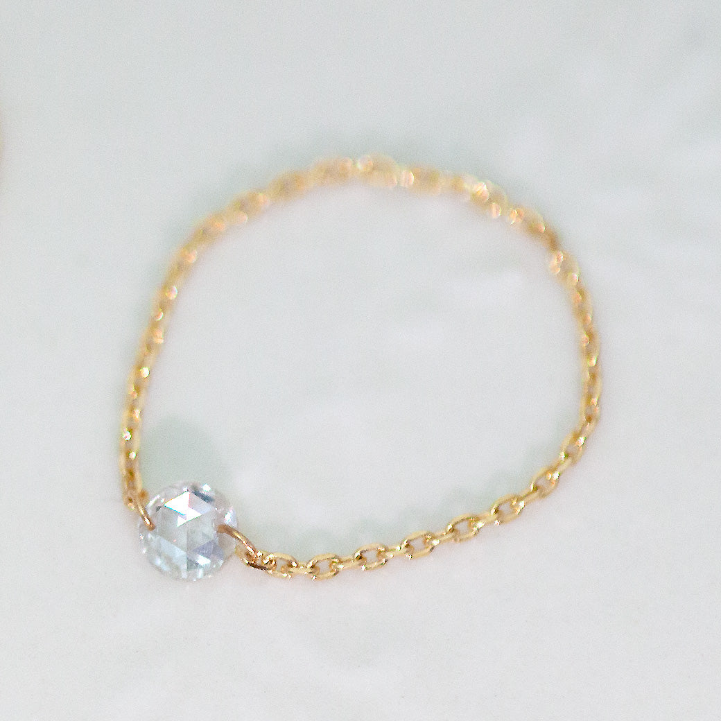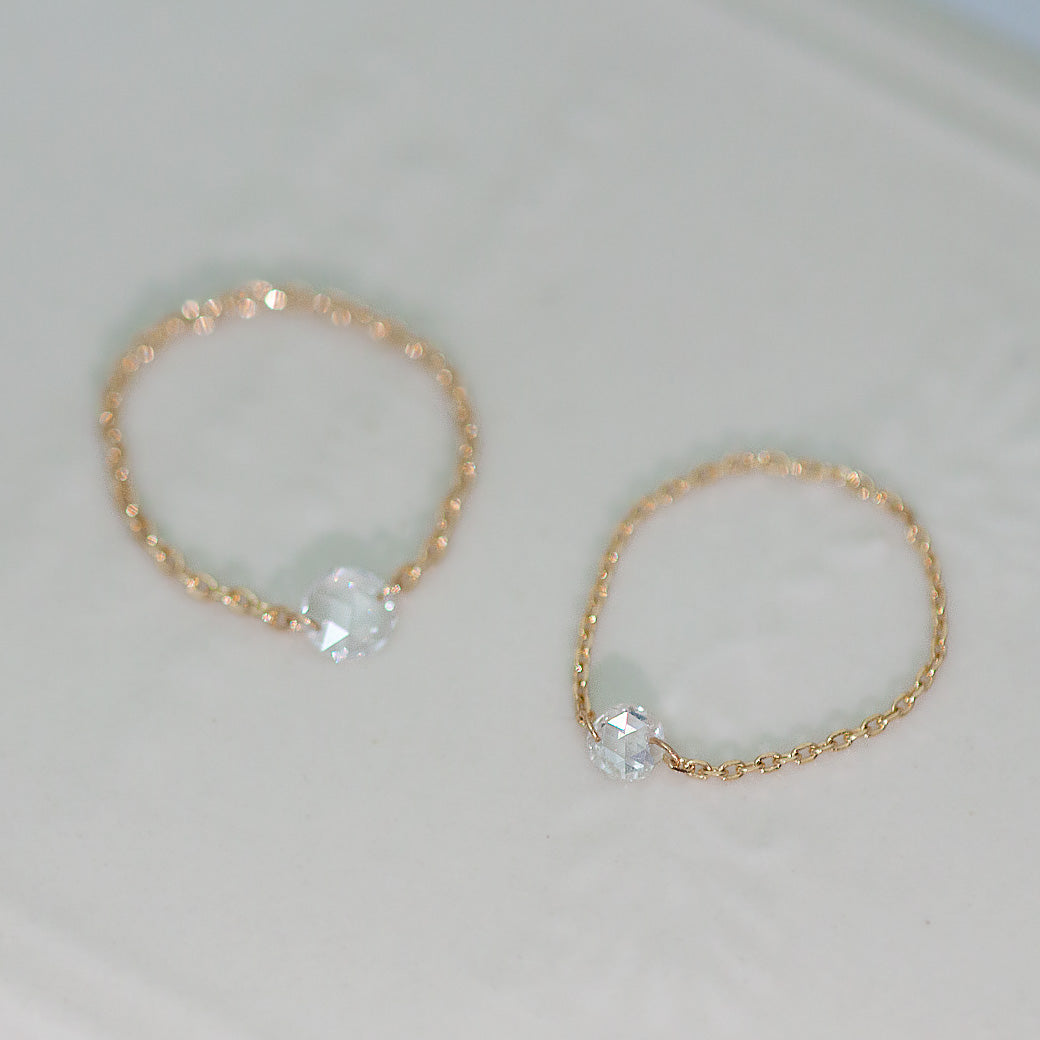 0.2ctにわずかに目立たない0.19ctの規格外ローズカットダイヤモンドの繊細なチェーンリング。