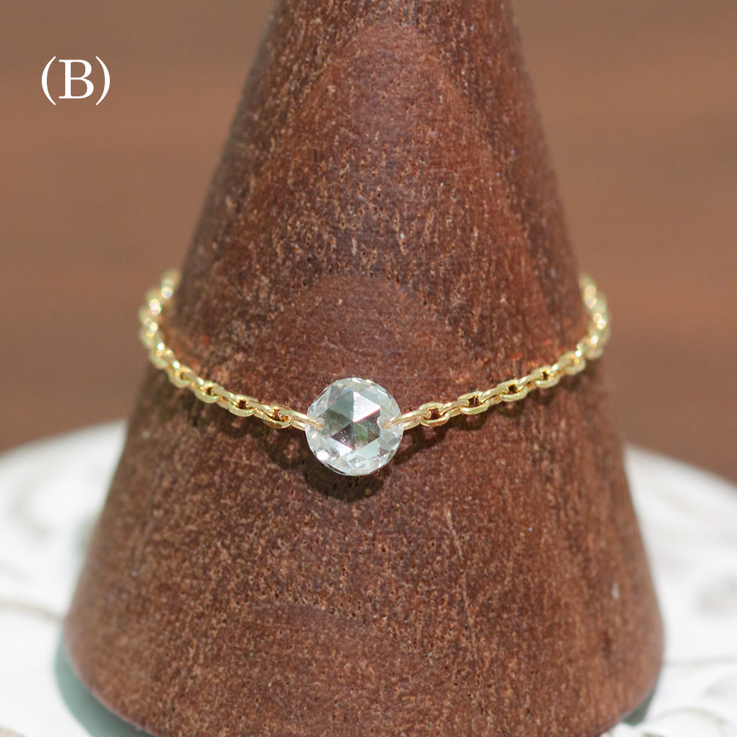【個数限定】天然ローズカットダイヤモンド フレームレス チェーンリング