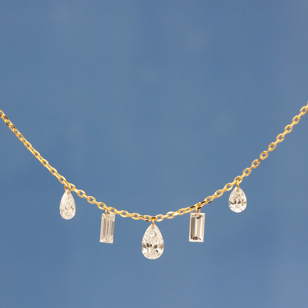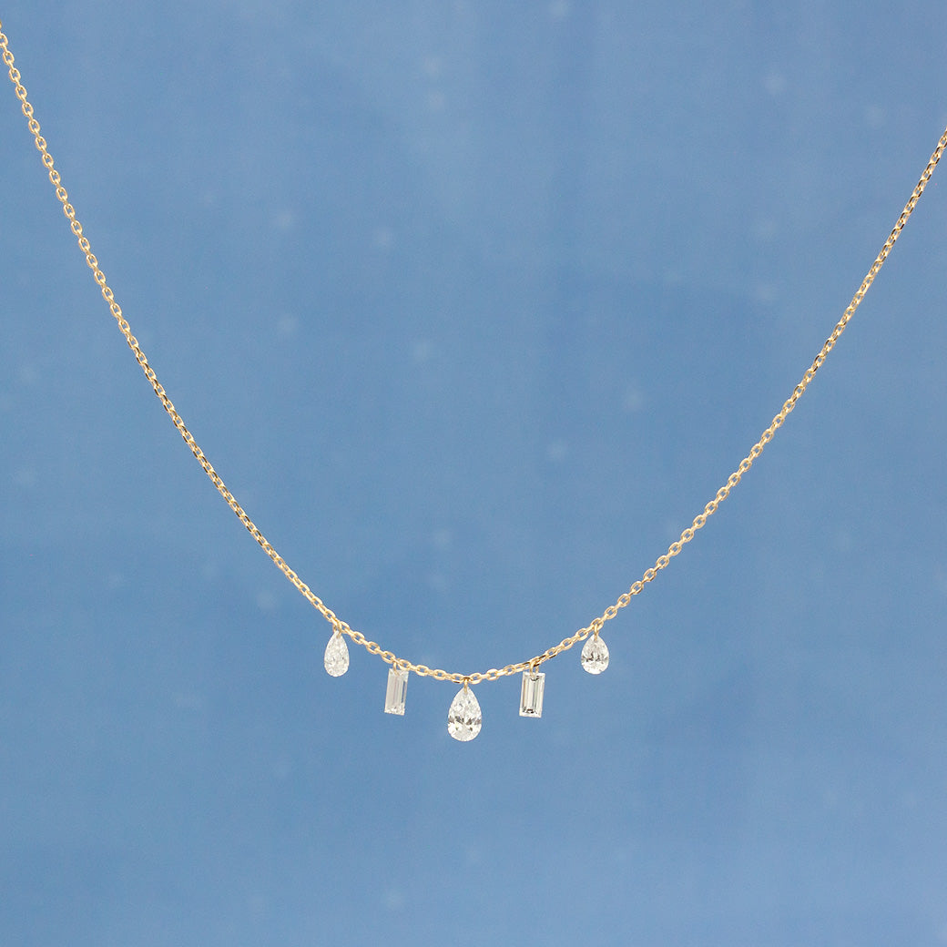 【ALTRO】Lior リオール K18 レーザーホール シャンデリア ネックレス シャンデリア ネックレス 0.57ct ペアシェイプ バゲット ラインデザイン GOD033NC