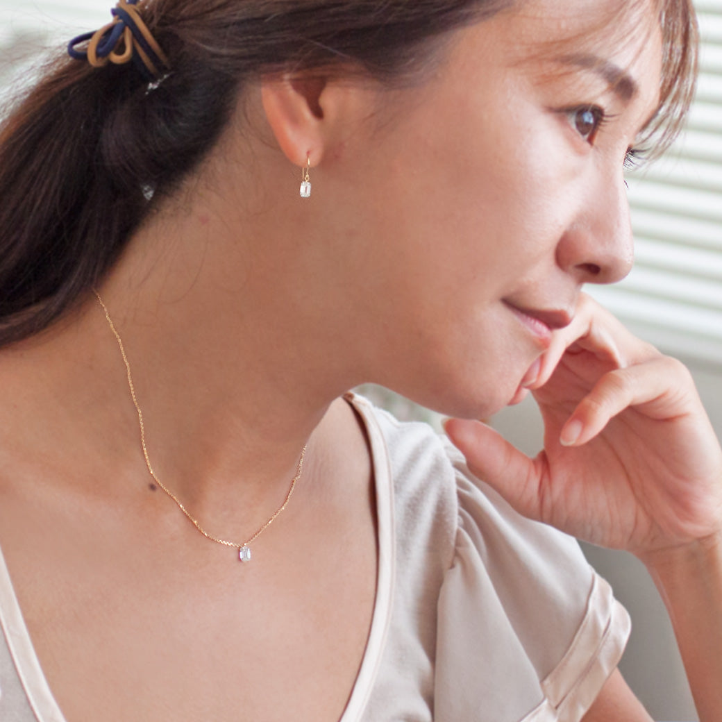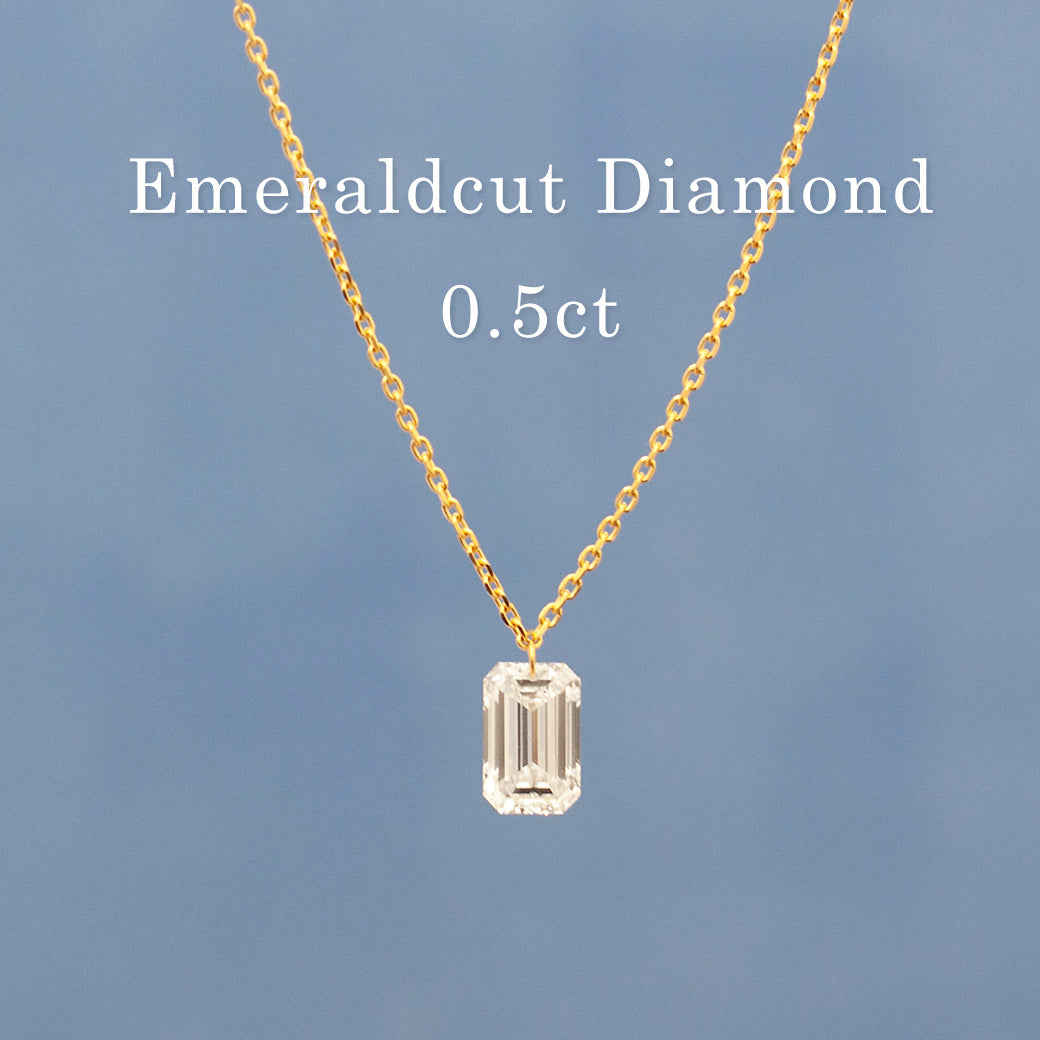 シャープで洗練された印象のエメラルドカットをひと粒、シンプルだからこそ美しいネックレス。