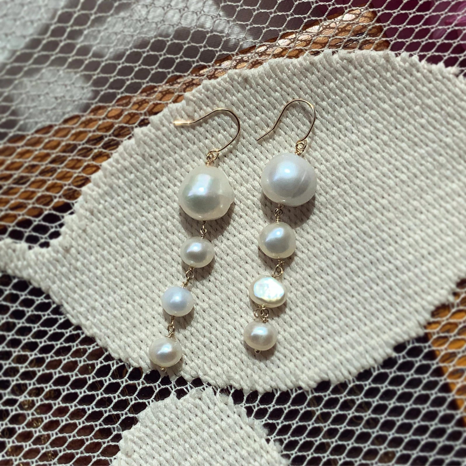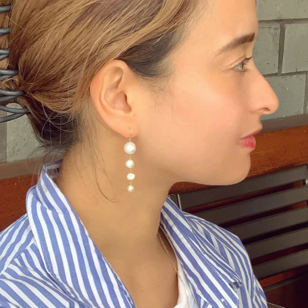 パールの甘美な光沢が顔まわりを明るく演出してくれるピアス。