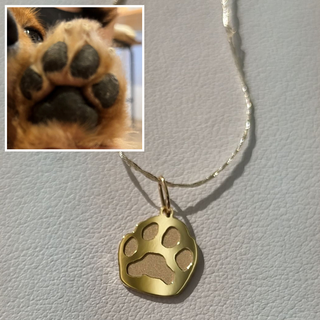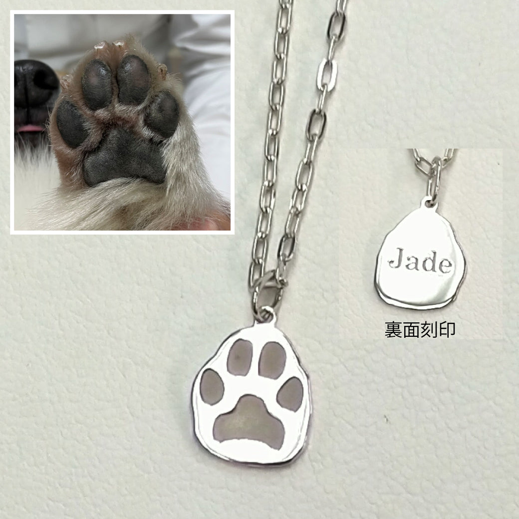 世界に一つ!我が子の肉球をデザインするオリジナルオーダージュエリー。大切な我が子といつでも一緒にいたい…そんな気持ちに寄り添い、おしゃれに我が子のぬくもりを身に着けられるジュエリーに。肉球のお写真をお送りいただき、データを作成し心を込めてお作り致します。裏には名前などを刻印することもできます。(有料1,650円)